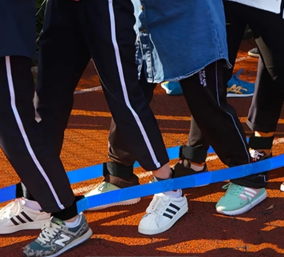 A gyerekek 3-4 egymás mögé állnak és mindkét bokájukra rögzitik a szalagot, a cél melyik négytagú csapat tudja a legrövidebb idő alatt eljutni a célig. Az összerögzitett lábakkal ez nem is olyan könnyű. A játék nagyon vicces, mert a csapatoknak össze kell hangolniuk a lépéseiket, különben könnyen megbotlanak vagy oldalra dőlnek. A sok ügyetlen lépés, botladozás és a közös próbálkozás rengeteg nevetést hoz.