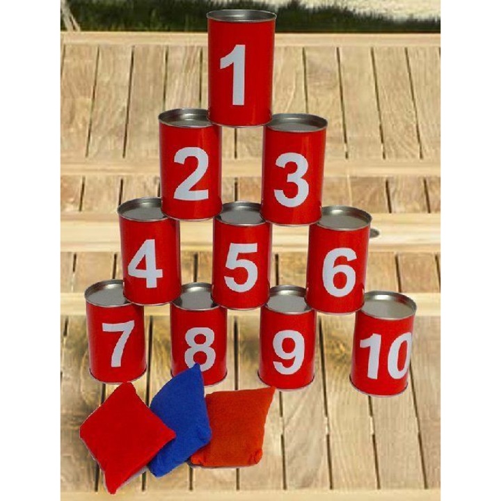 Rakjuk egymásra a dobozokat piramis alakban egy asztalra vagy ládára. A gyerekek sorban állnak és babzsákkal próbálják ledönteni a tornyot. A játék izgalmas, mert minden dobásnál várakozás van a levegőben: vajon leborul-e az egész torony, vagy csak egy-két doboz dől le? A csörgő, guruló dobozok hangja és látványa mindig nagy nevetést vált ki.