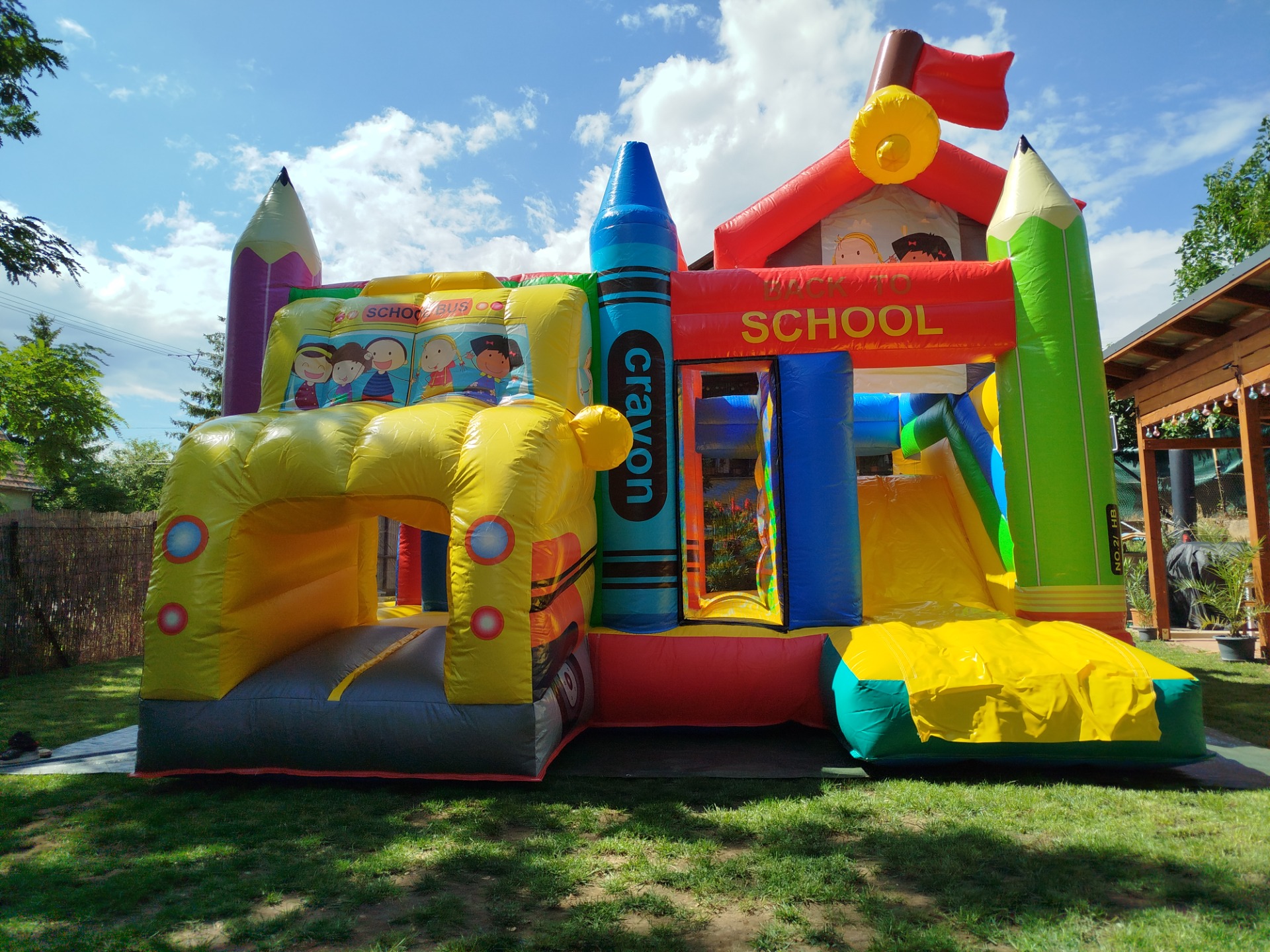 Az iskolabuszos ugrálóvár játékosan hozza közelebb az "iskolás" élményt, tele nevetéssel és mozgással. 4–12 éves gyerekeknek ideális, akik szívesen bújnak kis utas vagy sofőr szerepébe, miközben biztonságosan ugrálnak és csúszdáznak. Kiváló választás tanévnyitókra, óvodai-iskolai rendezvényekre, gyereknapokra és közösségi programokra, ahol vidám, közösségépítő hangulat a cél.