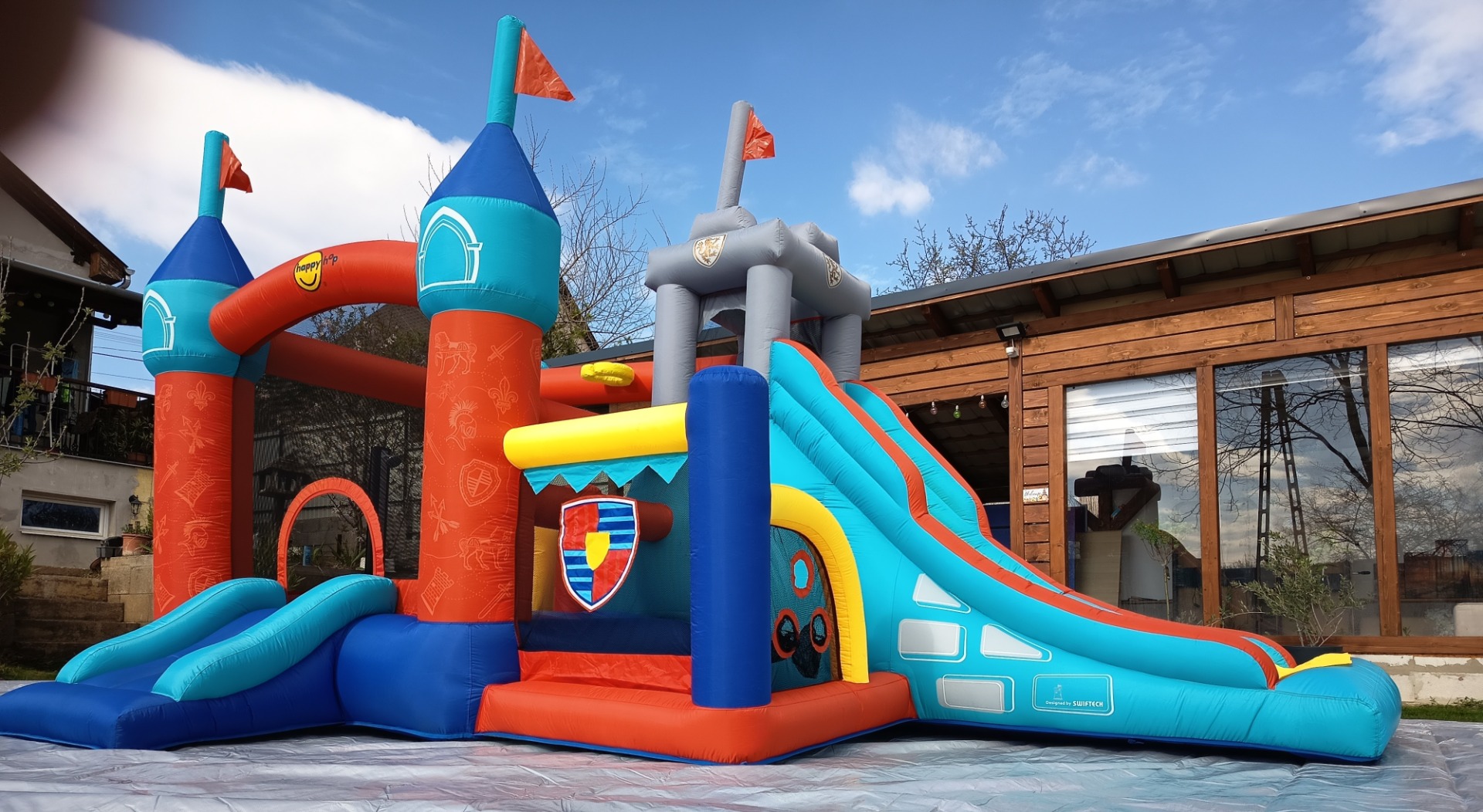 Kússz, ugrálj és juss fel a vár tetejébe! A színpompás ugrálóvár izgalmas kalandokat tartogat Számodra! A könnyedén felfújható birodalom különleges részekből áll. Dobd át kedvenc labdádat a kosárpalánkon, kerüld ki a rád leselkedő akadályokat, majd bátorságodról számot adva, csússz le a nagy csúszdán! Ha pedig céldobó képességeidet szeretnéd fejleszteni, használd a vár oldalán lévő céltáblát! A mókás ugrálások közben közelebbről megismerheted a középkori várak felépítését és hangulatát, miközben felejthetetlen élményekben lesz részed. A labdafürdő és a titkos alagút könnyedén el fogja indítani a fantáziád fergeteges történetek megalkotására. A játék tökéletes választás lesz egy születésnap vagy akár más ünnepségek alkalmával is. Puha anyagnak köszönhetően pedig az ugrálóvár biztonságos közeget nyújt a nagy ugrálásokhoz.