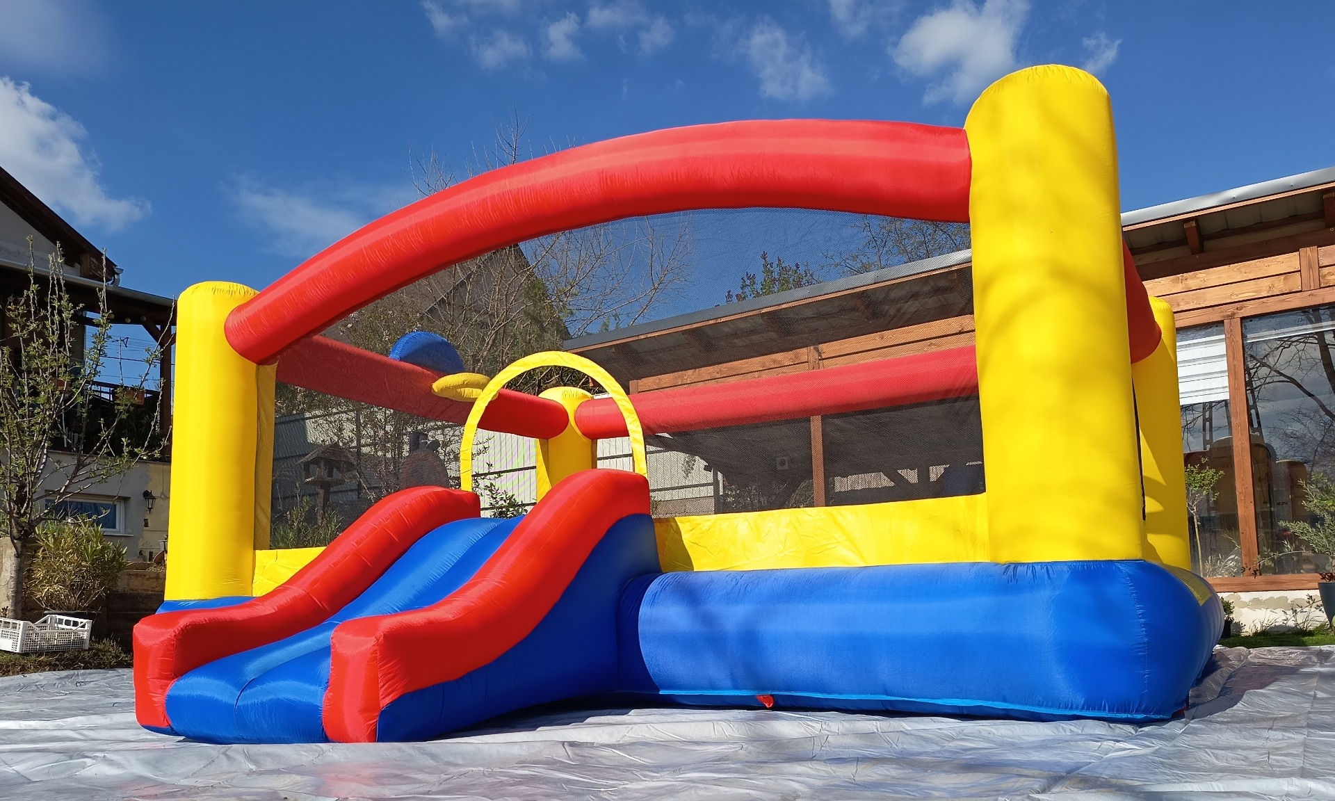 Vidám szinek, nagy ugrófelület csúszdával? Igen, ez nagyszerű kombináció, a gyerekek élvezni fogják a játékot benne! A megunhatatlan kastélyos témával nem lehet melléfogni! Minden oldalról biztonsági hálóval határolt, így a gyerekek garantáltan nem esnek ki, viszont a szülők bárhonnan szemmel tarthatják őket.